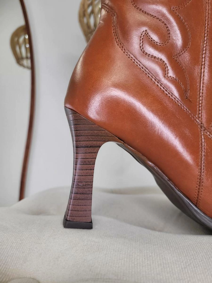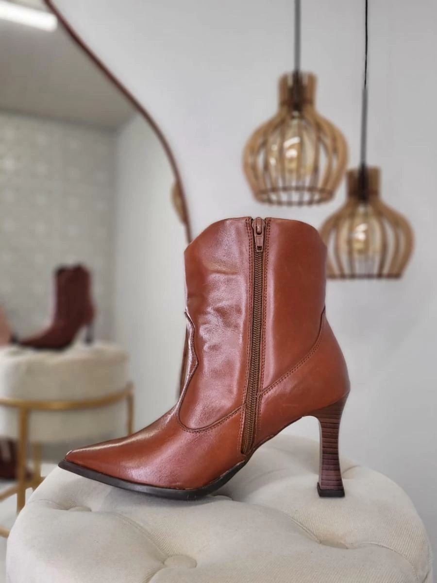 Com inspiração western e toque de modernidade, essa bota é puro estilo. Confeccionada em couro, ela traz recortes marcantes e um design que remete ao clássico country, repaginado com sofisticação. O bico fino alonga a silhueta, enquanto o salto taça adiciona um ar elegante e contemporâneo ao modelo. Ideal para quem busca uma peça com personalidade para compor produções autênticas e cheias de atitude.
